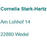 Durch den Einsatz von Cookies kann Cornelia Stark-Hartz den Nutzern dieser Internetseite nutzerfreundlichere Services bereitstellen, die ohne die Cookie-Setzung nicht möglich wären.